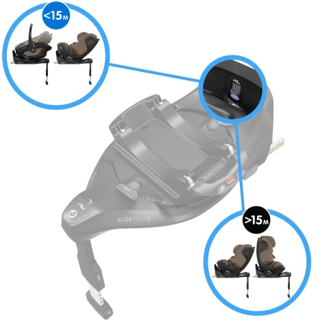Lätt att sätta in och ta ut med SLIDETECH®2 | En bas, flera bilbarnstolar | Säkra resor från födseln upp till 4 års ålder | Färgkodade installationsindikatorer | Rotationslås för säkert bakåtvänt läge |