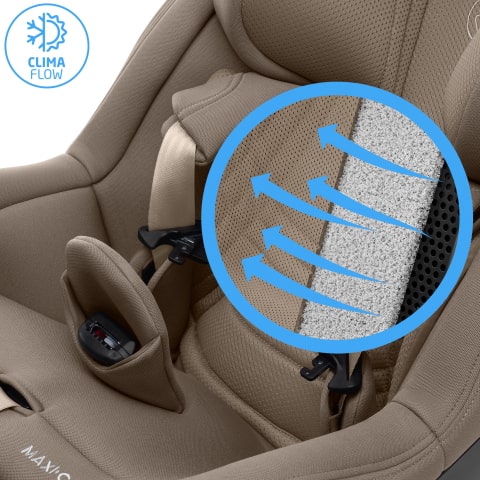 - Ditt barn har det bekvämt året runt tack vare bilbarnstolens ClimaFlow-ventilationspaneler, andningsbara skum och meshtyget som främjar god luftcirkulation.
