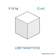 - 43,6 % stål, 5,04 % EPP/EPS, 0,32 % ABS, 50,66 % PP, 0,32 % MC90, 0,06 % TPE
