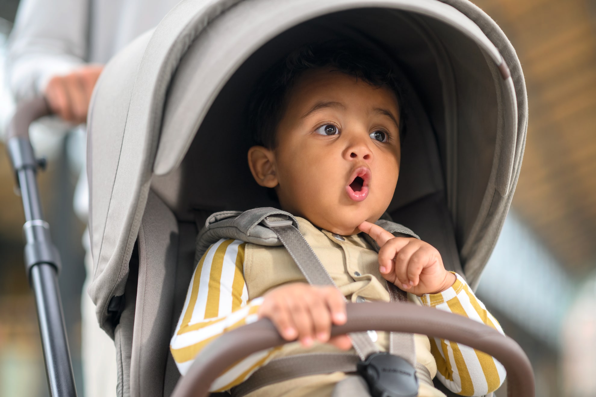 När din bebis blir äldre kommer han eller hon bli mer nyfiken på omvärlden. När ditt bebis sitter i en framåtvänd barnvagn kan han eller hon enklare ta del av denna värld. Om du och ditt barn tittar på samma saker kan det underlätta språkutvecklingen, eftersom du då kan sätta namn på det ni båda ser.