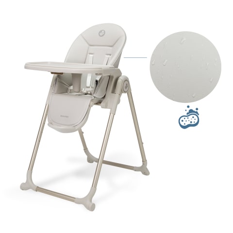 Oavsett om det är yoghurtfläckar eller spagettistänk, klarar Ava2 denna smuts med fläckbeständiga tyger och en lättrengjord vegansk lädersits. När måltiden är över gör den lättviktiga ramen och brickan som kan tas bort med en hand (med diskmaskinssäker avtagbar bricka) det enkelt att fälla ihop och ställa undan stolen – så att du kan återta ditt utrymme på några sekunder.