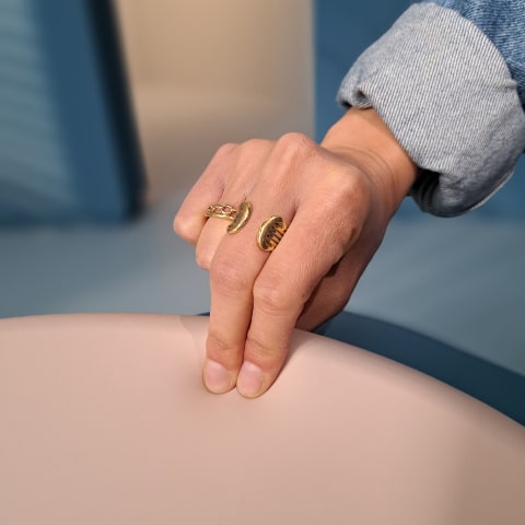 Med rena, svängda linjer och en elegant form passar Mavis perfekt i ditt barns barnkammare. Den är också utformad med ett halkskyddsmönster på basen som håller den säkert på plats, oavsett om du använder den vid skötbordet, på golvet eller var du än vill.